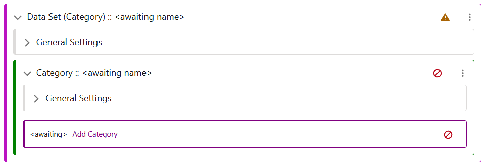 When created, your new Data Set will look like the following screenshot. You can swap the Category to a Group by choosing swap in its menu. You can then add any category/group available.