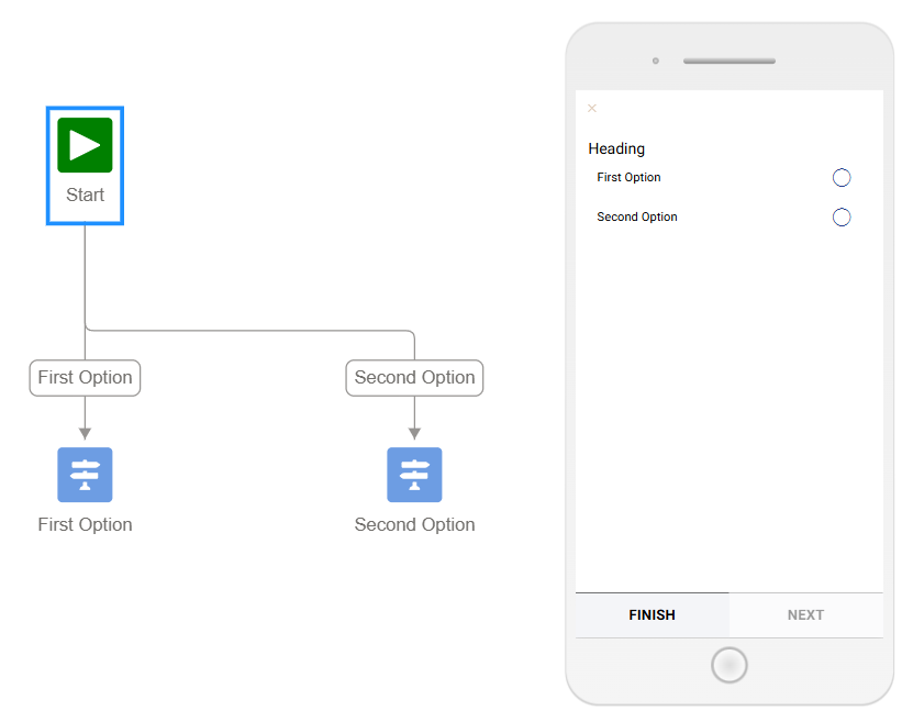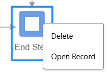 End Steps are the terminus point of a Flow. They allow a User to press ‘Finish’ and exit the flow back to their point of entry. As they are the end, no steps can be added as children.
