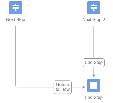 As seen here, multiple routes through a flow may converge on a single end-point. Or there may be an end point for each, or one shared across the entire flow. Each use-case is different. Linkages can be created between any intermediary steps, which can allow flows to nest within other sections.