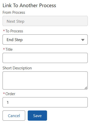 Any two Stages in a flow may be connected, ensuring that any pathway through can be created. Right Click on any Stage (except your Start screen), and click Link to Another Process. The following menu is then presented, and a link can be created. Flows do not have to be linear.