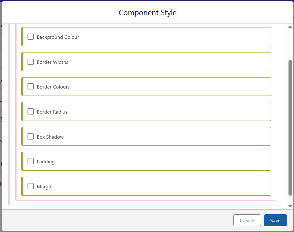 Inside the Style are the options you can see below. For the Full Width class, the margins and padding values are all set to 0px to ensure there is no spacing around the image. Similar options are available for the Wrapper, depending on where the styling is required.