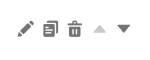 Each block has the buttons pictured below. From left to right these are: Edit, Clone, Delete, Move Down, Move Up. Each block can be repositioned on the article as necessary, and articles can also be moved to different points in the menu.