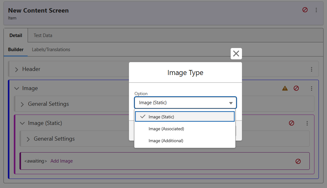 As these screens rely on being surfaced via a Content Item, its image and field is dependent on the record, rather than being static.
