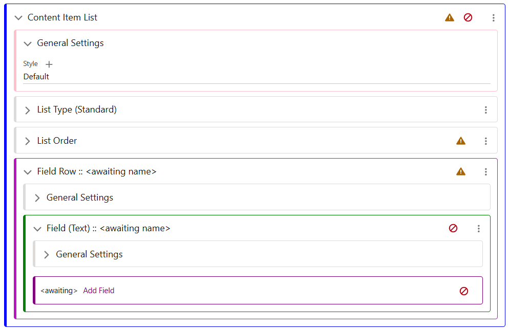 Field Row controls which fields from your Collection Items are pulled through to the List. Often, the first field selected will be the Name of the Item.