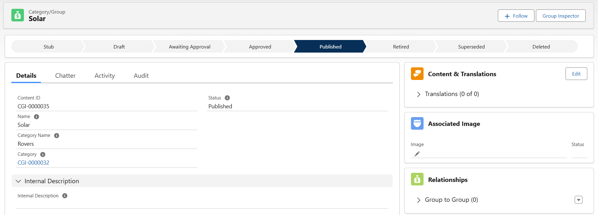 From the Hub it is possible to explore your data by Category or by Group, while the Group Inspector button inside the group record itself will provide a better oversight of all relationships.