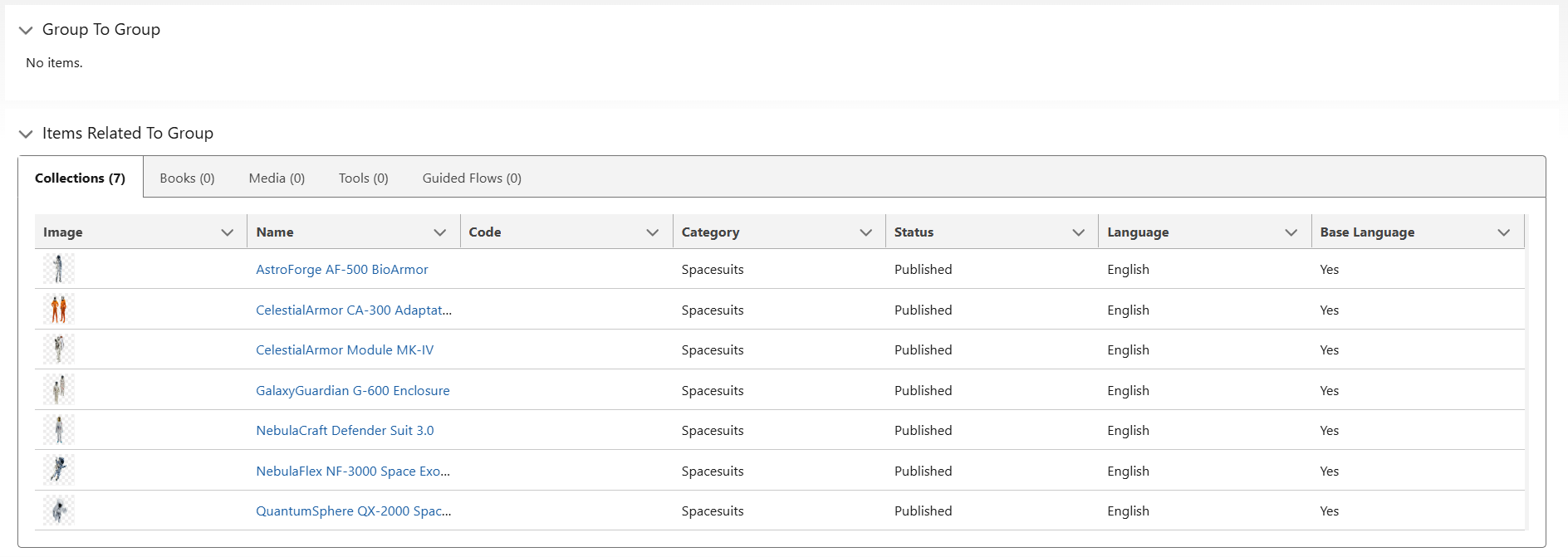 As seen in these images, the Inspector will show you the items both within and related to this group, to get a better idea of how your data is structured. The Spacesuits related to this group will be indicated as safe for use within this planetary group.