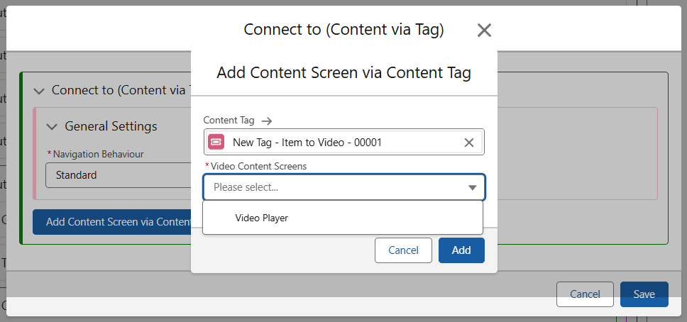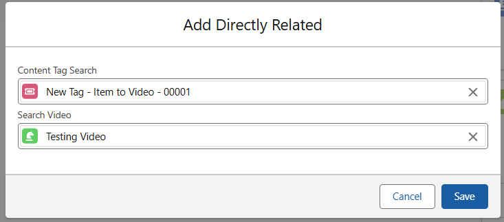 Back in the Collection Item, Add a new ‘Directly Related – To’ piece of Content, and configure it as follows depending on your Content Tag setup. Here, I want to use the ‘Tagged Content’ button to direct to the explanatory video, one of which exists for each product. By using the Content Tag, the same screen can be used to surface as many different videos as required.